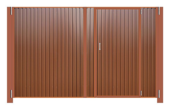 По желанию заказчика калитка может быть встроена сбоку или по центру, открываться вправо либо влево. Ворота с калиткой комплектуются доводчиками, обеспечивающими плавный, бесшумный ход с надежным примыканием. Доводчики дают 100% гарантию закрытия калитки. Это предотвращает случайный подъем ворот с открытой калиткой - как следствие, их поломку.